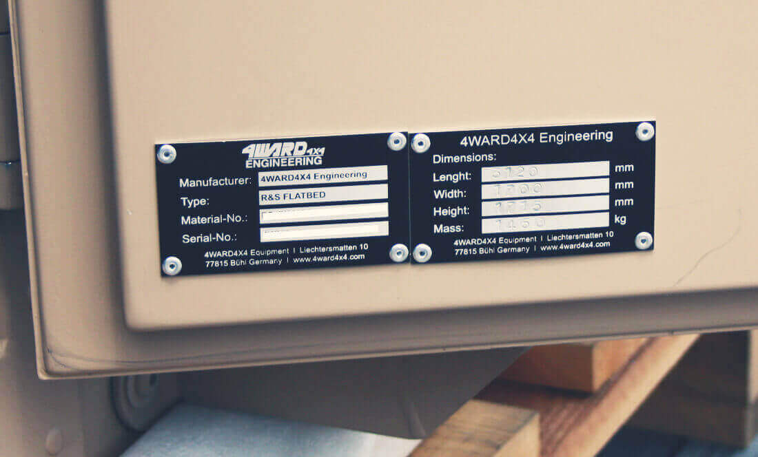 Typ plates with chassis number and technical specifications for perfect assignment.